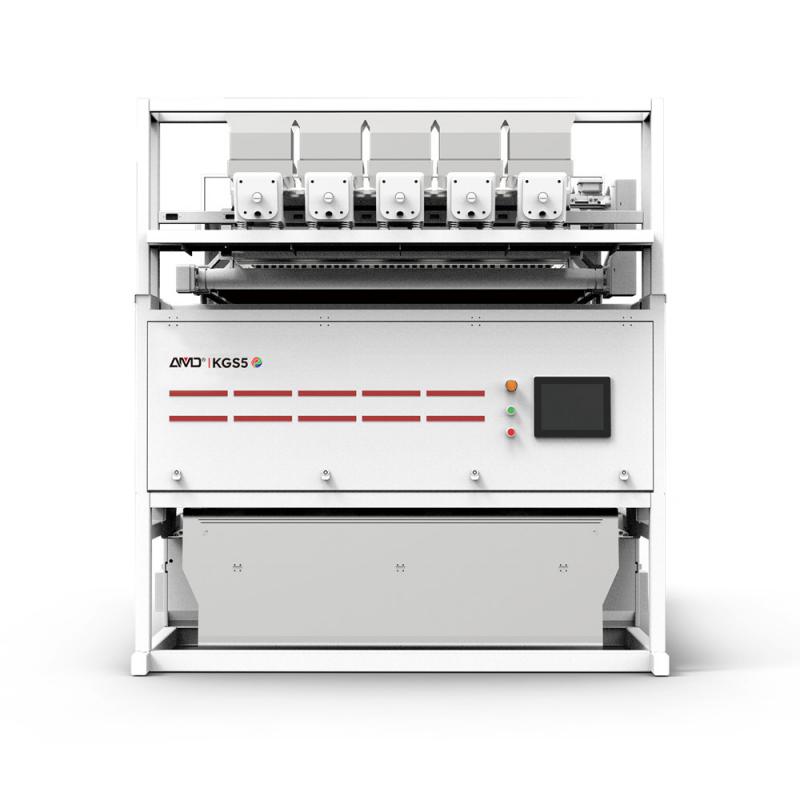 Le séparateur de verre AMD® KGS5 (KP) utilise une technologie de reconnaissance optique IA avancée pour séparer le verre par couleur et forme grâce à la détection de plusieurs chemins optiques et à des algorithmes d'apprentissage profond, assurant une élimination précise des impuretés et une production stable de haute pureté.